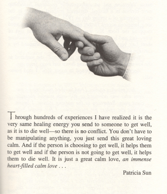 "Living freely, openly, with courage and compassion is a universal quest, one we usually fall far short of attaining. Patricia Sun is someone who addresses this search directly and clearly. Patricia Sun is in the vanguard of those who have been acknowledged as point riders for a new way to live in the world. Visionary without being Pollyanish, she imparts her practical philosophy simply and clearly. Her logic is compelling and her intuitive wisdom profound. She speaks of each person's inherent capacity to transform, while creating an atmosphere which naturally catalyzes creative change. Her easy, gentle manner invites listeners to be more open and available for new possibilities." —Michael Toms, host of New Dimensions Media
